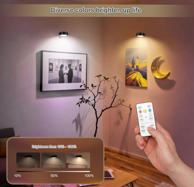 【3 Colours & Adjustable Brightness】Battery operated wall lights provide 3 light temperatures (Warm, Natural and White) with brightness adjustable from 10% to 100%.
