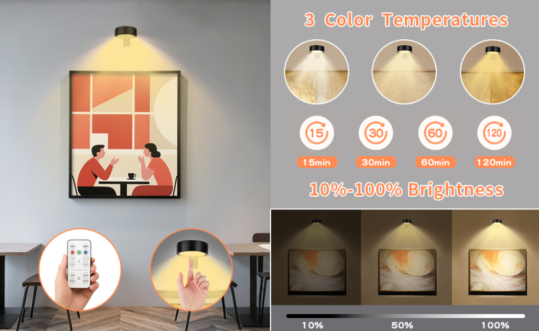 【Dual-Mode Control】Control your Picture Lights for Wall effortlessly with the remote, adjusting both colour and brightness at a distance.