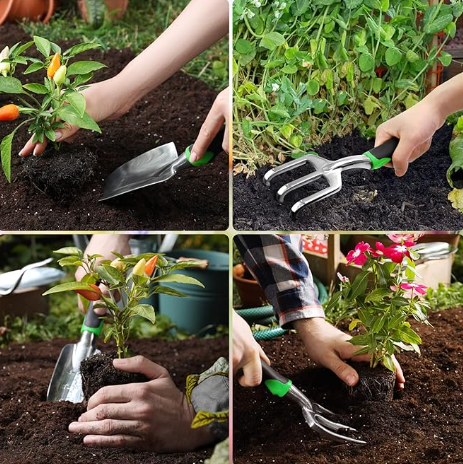 【Stainless Steel Garden Tools】Our gardening tools set are made of heavy duty stainless steel, durable, rust proof, wear-resistant of the absolute highest quality.