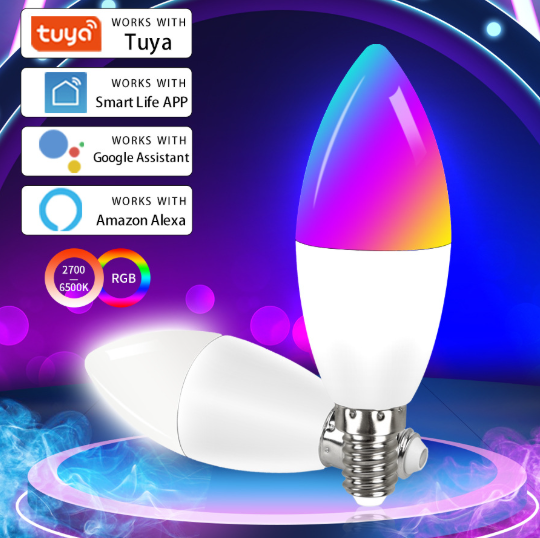 Tuya E14 LED bulb Smart Candle Wifi RGBCW 5W Dimmable